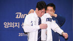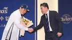[OSEN=창원,박준형 기자] 8일 경남 창원시 사보이호텔에서 진행된 NC 양의지 입단식에서 NC 이동욱 감독이 양의지와 악수를 나누고 있다.‘FA 최대어’ 포수였던 양의지는 지난 달 11일 4년 총액 125억 원의 조건으로 NC행을 선
