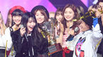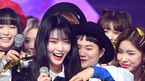 [OSEN=고양, 민경훈 기자] 9일 오후 경기도 고양시 일산동구 MBC드림센터에서 진행된 MBC 뮤직 '쇼 챔피언(Show Champion)' 생방송서 청하가 쇼챔 1위 트로피를 받은 후 라붐과 기쁨을 나누고 있다./ rumi@osen.co.kr