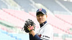 [OSEN=지형준 기자] 두산 베어스 시무식 겸 창단 기념일 행사가 15일 오전 서울 잠실야구장에서 열렸다.2차 3순위 이교훈이 포토데이 행사를 하고 있다. /jpnews@osen.co.kr