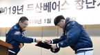 [OSEN=잠실, 이종서 기자] “쫄지마”두산은 15일 서울 잠실구장에서 ‘창단 기념식’ 행사를 열었다. 이날 자리에는 두산 베어스 전풍 사장을 비롯해 김태룡 단장, 김태형 감독 및 코칭 스태프, 선수단이 참석했다.이
