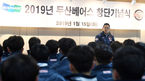[OSEN=지형준 기자] 두산 베어스 시무식 겸 창단 기념일 행사가 15일 오전 서울 잠실야구장에서 열렸다.전풍 사장이 인사말을 하고 있다. /jpnews@osen.co.kr