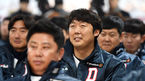 [OSEN=지형준 기자] 두산 베어스 시무식 겸 창단 기념일 행사가 15일 오전 서울 잠실야구장에서 열렸다.장원준, 정수빈이 시무식에 참석하고 있다. /jpnews@osen.co.kr