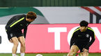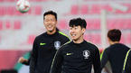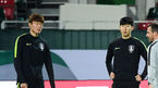 [OSEN=두바이(아랍에미리트),박준형 기자] 21일(현지시간) 아랍에미리트 두바이 라시드 스타디움에서 2019 아시안축구연맹(AFC)아시안컵 UAE 한국 vs 바레인 16강전 공식기자회견이 진행됐다.손흥민과 황의조가 함께 훈련을 하고있다