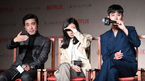 [OSEN=이대선 기자] 21일 오전 서울 강남구 인터컨티넨탈 서울 코엑스에서 넷플릭스 오리지널 드라마 ‘킹덤’ 제작발표회가 열렸다.배우 류승룡, 배두나, 주지훈이 취재진의 질문을 듣고 있다./sunday@osen.co.kr