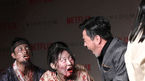 [OSEN=이대선 기자] 21일 오전 서울 강남구 인터컨티넨탈 서울 코엑스에서 넷플릭스 오리지널 드라마 ‘킹덤’ 제작발표회가 열렸다.배우 류승룡, 배두나, 주지훈, 김은희 작가, 김성훈 감독이 케이크를 커팅하다 좀비 분장