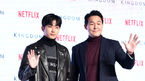 [OSEN=이대선 기자] 21일 오후 서울 송파구 롯데월드몰에서 넷플릭스 오리지널 드라마 ‘킹덤’ 레드카펫 행사가 열렸다.가수 진영과 배우 박성웅이 포토타임을 갖고 있다./sunday@osen.co.kr
