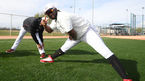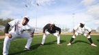 [OSEN=투산(美애리조나), 이동해 기자] 6일(한국시간) 미국 애리조나 투산 키노 스포츠컴플렉스에 스프링캠프를 차린 KT 위즈. 쿠에바스-알칸타라-로하스가 스트레칭을 하며 몸 풀고 있다. / eastsea@osen.co.kr