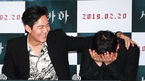 [OSEN=박준형 기자] 13일 오후 서울 용산 CGV에서 진행된 영화 ‘사바하’ 언론시사회에서 배우 이정재가 눈물 보인 장재현 감독을 다독이고 있다 . /soul1014@osen.co.kr