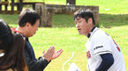 [OSEN=오키나와, 손용호 기자] 13일 오키나와 구시가와구장에서 두산 베어스가 구슬땀을 흘리며 훈련에 매진했다.이용찬이 두산 캠프를 방문한 선동렬 전 감독에게 폴더 인사를하고 있다./spjj@osen.co.kr