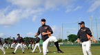 [OSEN=오키나와, 손용호 기자] 13일 오키나와 고친다 구장에서 한화 이글스 선수들이 구슬땀을 흘리며 훈련에 매진했다.한화 채드벨이 투수조 수비 훈련에서 홈 토스를 하고 있다./spjj@osen.co.kr