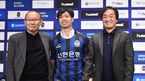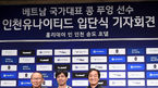 [OSEN=송도, 곽영래 기자] 베트남 축구 국가대표 응우옌 콩푸엉 인천유나이티드 입단식 및 기자회견이 14일 오전 인천 홀리데이 인 인천 송도호텔에서 진행됐다.박항서 감독, 콩 푸엉, 이영진 코치가 포토타임을 갖고 있다. / youngr