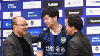 [OSEN=송도, 곽영래 기자] 베트남 축구 국가대표 응우옌 콩푸엉 인천유나이티드 입단식 및 기자회견이 14일 오전 인천 홀리데이 인 인천 송도호텔에서 진행됐다.콩 푸엉이 이영진 코치와 이야기를 나누고 있다. / youngrae@osen.co.kr