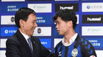 [OSEN=송도, 곽영래 기자] 베트남 축구 국가대표 응우옌 콩푸엉 인천유나이티드 입단식 및 기자회견이 14일 오전 인천 홀리데이 인 인천 송도호텔에서 진행됐다.전달수 대표이사와 콩푸엉이 포토타임을 갖고 있다. / youngrae@osen.co.