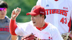 [OSEN=오키나와, 손용호 기자] 15일 오키나와 고친다 구장에서 KIA 타이거즈 선수단이 구슬땀을 흘리며 훈련에 매진했다.양현종이 홈 토스를 하고있다./spjj@osen.co.kr