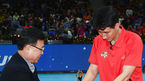 [OSEN=박준형 기자] 16일 수원실내체육관에서 진행된 도드람 2018~2019시즌 V리그 남자부 한국전력과 우리카드의 경기, 2세트 종료 후 한국전력 권영민 코치가 기록상을 받은뒤 선수들의 축하를 받고 있다../ soul1014@osen.co.kr