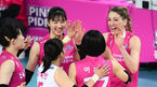 [OSEN=인천계양체,박준형 기자] 23일 오후 인천시 계양체육관에서 진행된 도드람 2018-2019 프로배구 V리그 여자부 흥국생명과 GS칼텍스의 경기, 1세트 흥국생명 톰시아의 득점때 선수들이 기뻐하고 있다. / soul1014@osen.co.kr