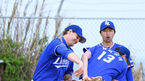 [OSEN=오키나와(일본), 민경훈 기자] 23일 오후 일본 오키나와 온나 아카마 볼 파크에서 진행된 삼성라이온즈의 오키나와 스프링캠프 훈련에서 삼성 헤일리와 맥과이어가 즐겁게 수비 훈련을 받고 있다./rumi@osen.co.kr