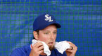 [OSEN=오키나와(일본), 민경훈 기자] 24일 일본 오키나와 온나 아카마 볼 파크에서 진행된 삼성라이온즈의 오키나와 스프링캠프 훈련에서 삼성의 새로운 용병 덱 맥과이어가 불펜 피칭을 한 후 땀을 닦고 있다./rumi@osen.co.kr