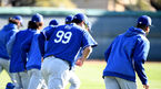 [OSEN=글랜데일(美애리조나), 지형준 기자] LA 다저스 선수들이 24일(이하 한국시간) 미국 애리조나주 글랜데일의 캐멀백랜치에서 열린 팀의 스프링캠프에서 몸을 풀고 있다. 류현진은 25일 LA 에인절스를 상대로 시범경기를 치른