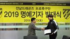 [OSEN=이균재 기자]전남드래곤즈(사장조청명)는지난23일전남드래곤즈사무국서2019명예기자발대식을진행했다.이날발대식에는조청명사장이참석해위촉장을전달한 뒤 새롭게바뀌는경기장을소개하고프로선수단의연습경기를관람