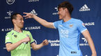 [OSEN=곽영래 기자] 'KEB하나은행 K리그 2019 개막 미디어데이'가 26일 그랜드힐튼 서울 그랜드볼룸에서 열렸다.전북 문선민과 대구 한희훈이 포토타임을 갖고 있다. / youngrae@osen.co.kr