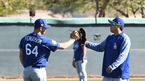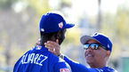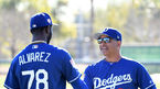 [OSEN=글렌데일(美애리조나), 지형준 기자] LA 다저스 로버츠 감독이 26일(한국시간) 미국 애리조나주 글렌데일의 캐멀백랜치에서 열린 팀의 스프링캠프에서 야디어 알바레스와 이야기를 나누고 있다./jpnews@osen.co.kr