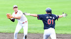 [OSEN=오키나와(일본), 민경훈 기자] 28일 일본 오키나와 구시가와 구장에서 SK 와이번스와 롯데 자이언츠의 연습경기가 열렸다. 5회초 무사 주자 만루 롯데 고승민의 땅볼 타구때 SK 박승욱이 1루로 송구하려 할때 롯데 최하늘이 두