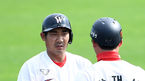 [OSEN=오키나와(일본), 민경훈 기자] 28일 일본 오키나와 구시가와 구장에서 SK 와이번스와 롯데 자이언츠의 연습경기가 열렸다. 4회말 1사 주자 1루 SK 이현석이 중견수 뒤 2루타를 날린 후 2루에서 박재상 코치와 하이파이브를 하