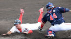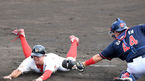 [OSEN=오키나와(일본), 민경훈 기자] 28일 일본 오키나와 구시가와 구장에서 SK 와이번스와 롯데 자이언츠의 연습경기가 열렸다. 4회말 1사 주자 2,3루 SK 박승욱의 플라이 타구때 최항이 홈으로 몸을 날려 세이프 되고 있다./rumi@osen.