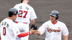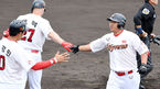 [OSEN=오키나와(일본), 민경훈 기자] 1일 일본 오키나와 구시가와 구장에서 열린 SK 와이번스와 LG 트윈스의 연습경기, 5회말 2사 주자 2루 SK 최정이 중월 투런홈런을 날린 후 홈을 밟고 있다./rumi@osen.co.kr
