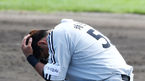 [OSEN=오키나와(일본), 민경훈 기자] 1일 일본 오키나와 구시가와 구장에서 열린 SK 와이번스와 LG 트윈스의 연습경기, 3회초 1사 주자 만루 LG 채은성이 병살타를 날린 후 아쉬워하고 있다./rumi@osen.co.kr