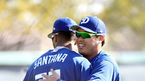 [OSEN=글렌데일(美애리조나), 지형준 기자] LA 다저스 류현진이 1일(이하 한국시간) 미국 애리조나주 글렌데일의 캐멀백랜치에서 열린 팀의 스프링캠프에서 캐치볼을 마치고 산타나와 포옹을 하고 있다.류현진은 2일 샌디에이고