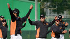 [OSEN=오키나와(일본), 민경훈 기자] 2일 일본 오키나와 고친다 구장에서 한화 이글스와 롯데 자이언츠의 연습경기가 열릴 예정인 가운데 한화 선수들이 몸을 풀고 있다./rumi@osen.co.kr