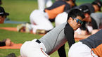 [OSEN=오키나와(일본), 민경훈 기자] 2일 일본 오키나와 고친다 구장에서 한화 이글스와 롯데 자이언츠의 연습경기가 열릴 예정인 가운데 한화 선수들이 훈련을 하고 있다./rumi@osen.co.kr