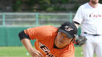 [OSEN=오키나와(일본), 민경훈 기자] 2일 일본 오키나와 고친다 구장에서 한화 이글스와 롯데 자이언츠의 연습경기가 열릴 예정인 가운데 한화 장민재가 수비훈련을 하며 얼굴을 찡그리고 있다./rumi@osen.co.kr