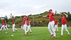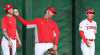 [OSEN=오키나와(일본), 민경훈 기자] 3일 일본 오키나와 킨 베이스볼 스타디움에서 KIA 타이거즈와 SK 와이번스의 연습경기가 열릴 예정이었으나 우천 취소됐다. 킨 베이스볼 스타디움에서 KIA 선수들이 몸을 풀고 있다./rumi@osen.co.kr