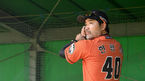 [OSEN=오키나와(일본), 민경훈 기자] 4일 일본 오키나와 고친다 구장에서 한화 이글스와 SK 와이번스의 연습경기가 열릴 예정인 가운데 한화 한용덕 감독이 불펜 타석에 서서 투수들의 피칭을 돕고 있다./rumi@osen.co.kr