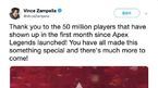 [OSEN=임재형 인턴기자]신입의 기세가 만만치않다. EA(Electronic Arts)의 배틀로얄 게임 에이펙스 레전드가 지난 2월 5일(이하 한국시간) 기습 출시 이후 한달 만에 이용자 5000만을 달성하며 포트나이트의 아성에 도전했다. 포트나이트