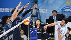 [OSEN=계양, 곽영래 기자] 7일 오후 인천 계양체육관에서 '2018-2019 V리그' 남자부 대한항공과 우리카드의 경기가 열렸다.1세트 대한항공 진상헌이 블로킹 득점을 올린 뒤 기뻐하고 있다. / youngrae@osen.co.kr