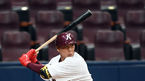 [OSEN=박준형 기자] 10일 오후 서울 고척스카이돔에서 열린 키움 히어로즈와 두산 베어스의 연습경기,2회말 1사 키움 김수환이 타격을 하고 있다./ soul1014@osen.co.kr