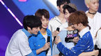 [OSEN=민경훈 기자] 12일 오후 서울 마포구 상암동 SBS 프리즘타워 오디토리움서 진행된 SBS MTV '더 쇼' 생방송에서 1위를 한 TXT가 기뻐하고 있다. / rumi@osen.co.kr
