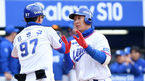 [OSEN=대구, 박재만 기자] 12일 오후 대구 삼성라이온즈파크에서 ‘2019 신한은행 MY CAR KBO리그’ 삼성 라이온즈와 kt wiz의 시범경기가 열렸다.9회말 선두타자 삼성 손주인이 동점 홈런을 날린 뒤 김한수 감독과 하이파이브를
