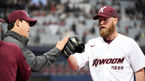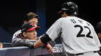 [OSEN=고척, 곽영래 기자] 12일 오후 서울 고척스카이돔에서 '2019 KBO리그 시범경기' 키움 히어로즈와LG 트윈스의 경기가 열렸다.LG 김민성이 김현수와 이야기를 나누고 있다. / youngrae@osen.co.kr