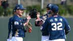 ㅍOSEN=고척, 곽영래 기자] 13일 오후 서울 고척스카이돔에서 '2019 KBO리그 시범경기' 키움 히어로즈와 LG 트윈스의 경기가 열렸다.7회말 무사 키움 장정석 감독이 솔로 홈런을 때린 장영석과 하이파이브를 하고 있다. / youngrae@osen.co