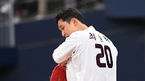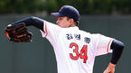 [OSEN=고척, 곽영래 기자] 13일 오후 서울 고척스카이돔에서 '2019 KBO리그 시범경기' 키움 히어로즈와 LG 트윈스의 경기가 열렸다.3회초 1사 1,2루 키움 최원태가 LG 김현수를 중견수 뜬공으로 처리한 뒤 땀을 닦고 있다. / youngrae@osen.co.