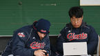 [OSEN=김해, 박재만 기자] 13일 오후 김해 롯데자이언츠상동야구장에서 ‘2019 신한은행 MY CAR KBO리그’롯데 자이언츠와 NC 다이노스의 시범경기가 열렸다.롯데 톰슨이 자신의 투구폼을 찍은 영상을 보고 있다. /pjmpp@osen.co.kr