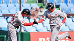 [OSEN=고척, 민경훈 기자] 15일 오후 서울 고척스카이돔에서 열린 ’2019 KBO리그 시범경기' 키움 히어로즈와 롯데 자이언츠의 경기, 7회말 키움 선두타자 김수환이 우월 역전 홈런을 날린 후 덕아웃에서 동료들과 하이파이브를