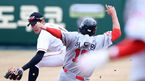 [OSEN=대전, 박재만 기자] 15일 오후 대전 중구 부사동 한화생명이글스파크에서 ‘2019 신한은행 MY CAR KBO리그’한화 이글스와 SK 와이번스의 시범경기가 열렸다.7회초 1사 1,2루 SK 고종욱의 투수 앞 땅볼때 2루 주자 노수광이