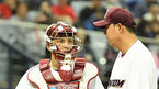 [OSEN=고척, 민경훈 기자] 15일 오후 서울 고척스카이돔에서 열린 ’2019 KBO리그 시범경기' 키움 히어로즈와 롯데 자이언츠의 경기, 4회초 1사 주자 1,2루 롯데 아수아헤 타석에서 키움 박동원이 마운드에 올라 선발 김동준과 얘기