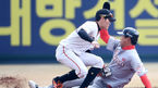 [OSEN=대전, 박재만 기자] 15일 오후 대전 중구 부사동 한화생명이글스파크에서 ‘2019 신한은행 MY CAR KBO리그’한화 이글스와 SK 와이번스의 시범경기가 열렸다.2회초 2사 1루 SK 한동민이 2루로 쇄도하다 한화 강경학에게 태그